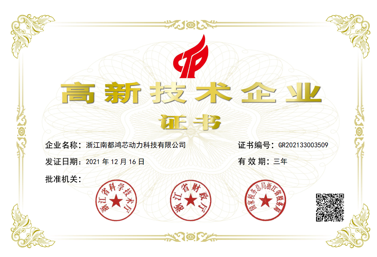 克日,,,,,,JDB电子全资子公司——浙江JDB电子鸿芯动力科技有限公司获得国家高新手艺企业认定。。。。。。。凭证相关划定,,,,,,JDB电子鸿芯自通过高新手艺企业认定起一连三年,,,,,,可享受国家关于高新手艺企业的税收优惠政策。。。。。。。