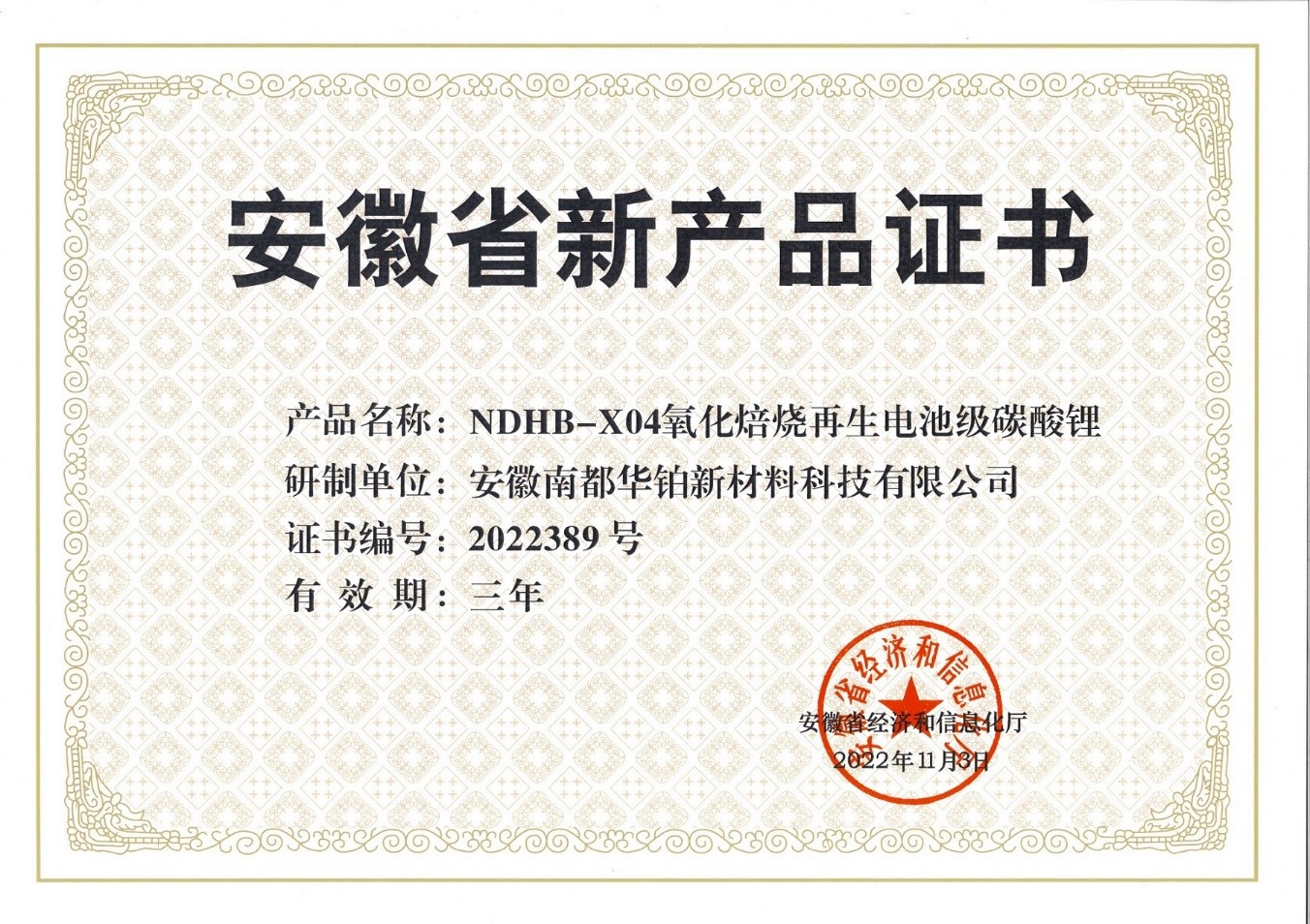 ÈÕǰ£¬£¬£¬£¬£¬£¬£¬£¬°²»ÕJDBµç×Ó»ª²¬ÐÂÖÊÁϿƼ¼ÓÐÏÞ¹«Ë¾Ñз¢µÄ¡°NDHB-X04Ñõ»¯±ºÉÕÔÙÉúµç³Ø¼¶Ì¼Ëáﮡ±ºÍ¡°NDHB-X03ÕôÁóÔÙÉú·ú»¯¼Ø¡±Á½Ïî²úÆ·£¬£¬£¬£¬£¬£¬£¬£¬ÈÙ»ñ°²»ÕÊ¡¾¼ÃºÍÐÅÏ¢»¯ÌüÈ϶¨½ÒÏþµÄ2022Äê¶ÈµÚÈýÅú¡°°²»ÕʡвúÆ·Ö¤Ê顱¡£¡£¡£¡£¡£¡£¡£¡£