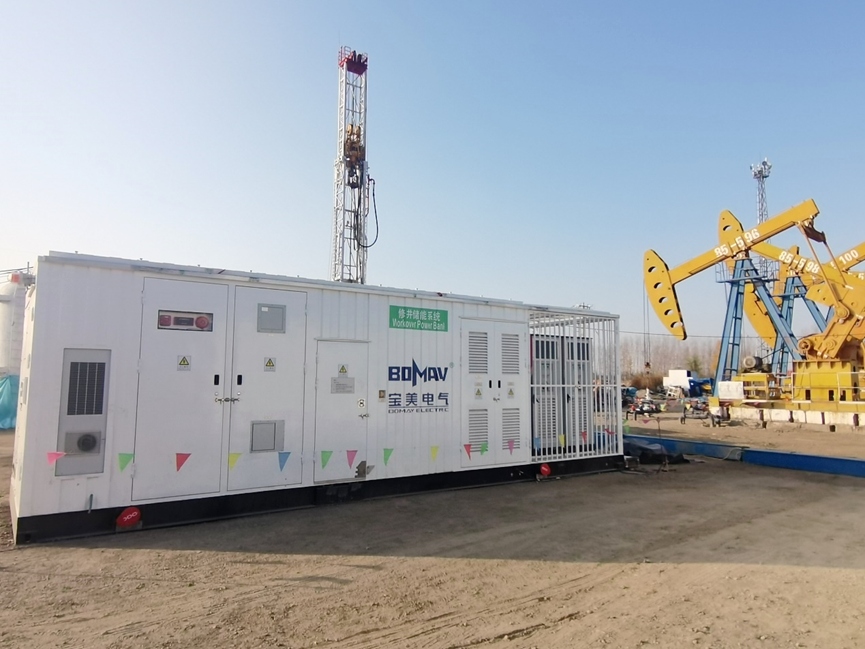 在另一个辽河油田项目中,,,,,,,宝美电气与JDB电子团结建设的储能系统,,,,,,,可自动识别钻修井作业工况,,,,,,,动态匹配发电机启息兵略,,,,,,,实现恒压电流输出,,,,,,,镌汰了能源铺张。。。。。。。。储能系统的建设,,,,,,,可为单口钻井作业节约20万元左右用度。。。。。。。。